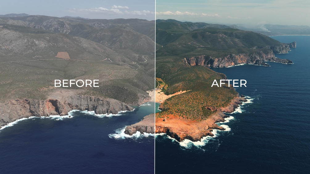 Sardinia, with the DJI Mini 3 Pro, D-Cinelike - Before & After "TIL LUTs 6"