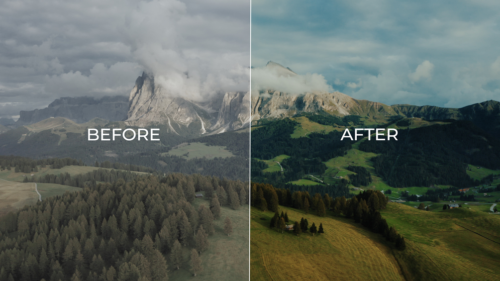 Dolomites, with the DJI Mini 4 Pro, D-Log - Before & After "TIL LUTs 8"